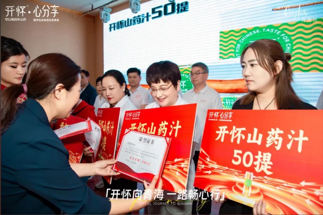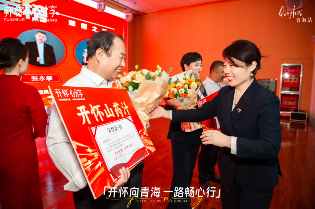 随后,高来起、王春平、张永攀、刘进枝4位业绩突破30万元的市场精英昂首登台,开怀·心分享为其颁发荣誉证书及“150提开怀山药汁”奖励。他们以精准的市场洞察力与高效执行力,在终端拓展中树立标杆,成为团队攻坚的智慧引擎。