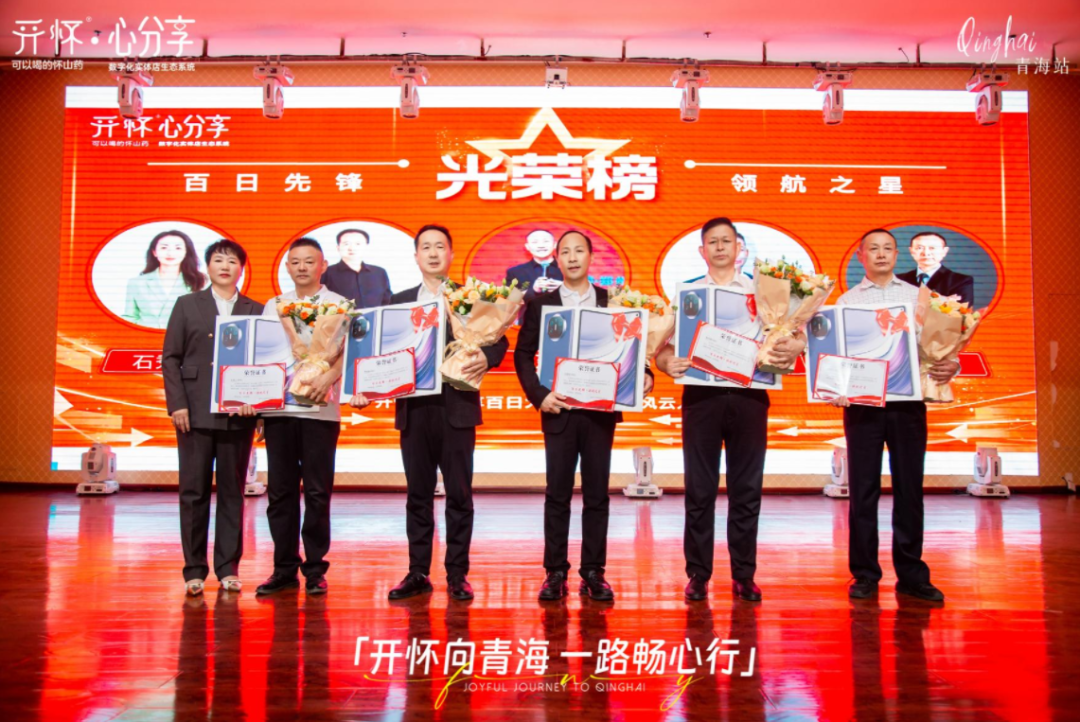 2025年6月24日,青海西宁这座高原古城,以它独有的壮美与热情,迎接一场商业与梦想交织的盛会——开怀·心分享“大干100天”表彰大会暨第四届产品推介会在此盛大举行。现场流光溢彩,获奖经销商与企业同仁齐聚青海,共同见证荣耀时刻,展望美好未来。