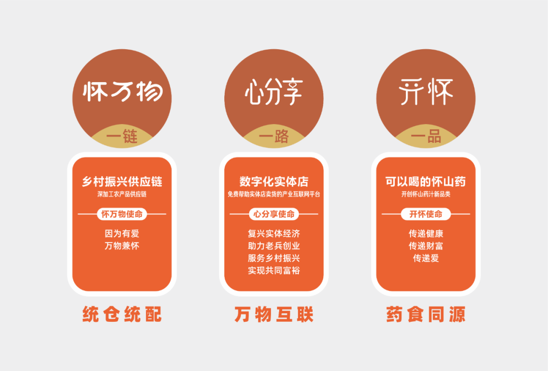 服务乡村振兴:开怀山药汁将焦作铁棍山药的产值以品牌化深加工成开怀山药汁的方式推升至超过100亿元;心分享数字化实体店生态系统,会逐步推动全国2000多个县的“一县一品”深加工农产品全国铺货,通过产业振兴带动地方经济发展;