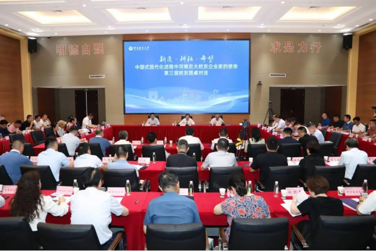 本届圆桌对话以 “新质•耕耘•希望——中国式现代化进程中河南农大校友企业家的使命” 为主题。来自五湖四海的75位杰出校友企业家带着对母校的拳拳深情重返校园,与河南农业大学校长周卫院士、校党委副书记游舸、副校长郭战伟等校领导,以及深耕农业及相关产业的杰出校友企业家围坐论道。我司董事长尹朝林先生作为其中一员,与参会嘉宾围绕主题展开了热烈而深入的思想交流与智慧碰撞。