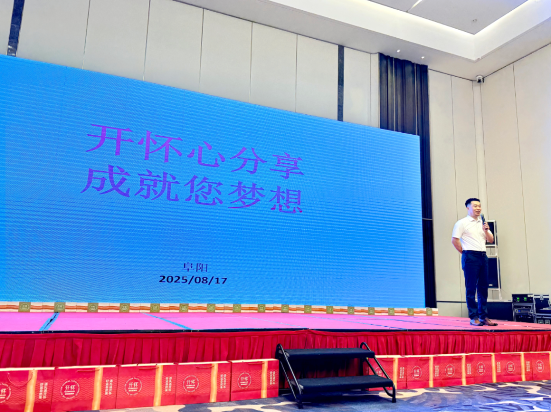 2025年8月17日,安徽阜阳城洋溢着热烈的氛围,开怀・心分享阜阳产品推介会于阜阳宝龙温德姆至尊豪廷大酒店成功举办。开怀核心管理团队、经销商合伙人及众多意向伙伴齐聚一堂,共同聚焦这场以健康为主题的行业盛会。