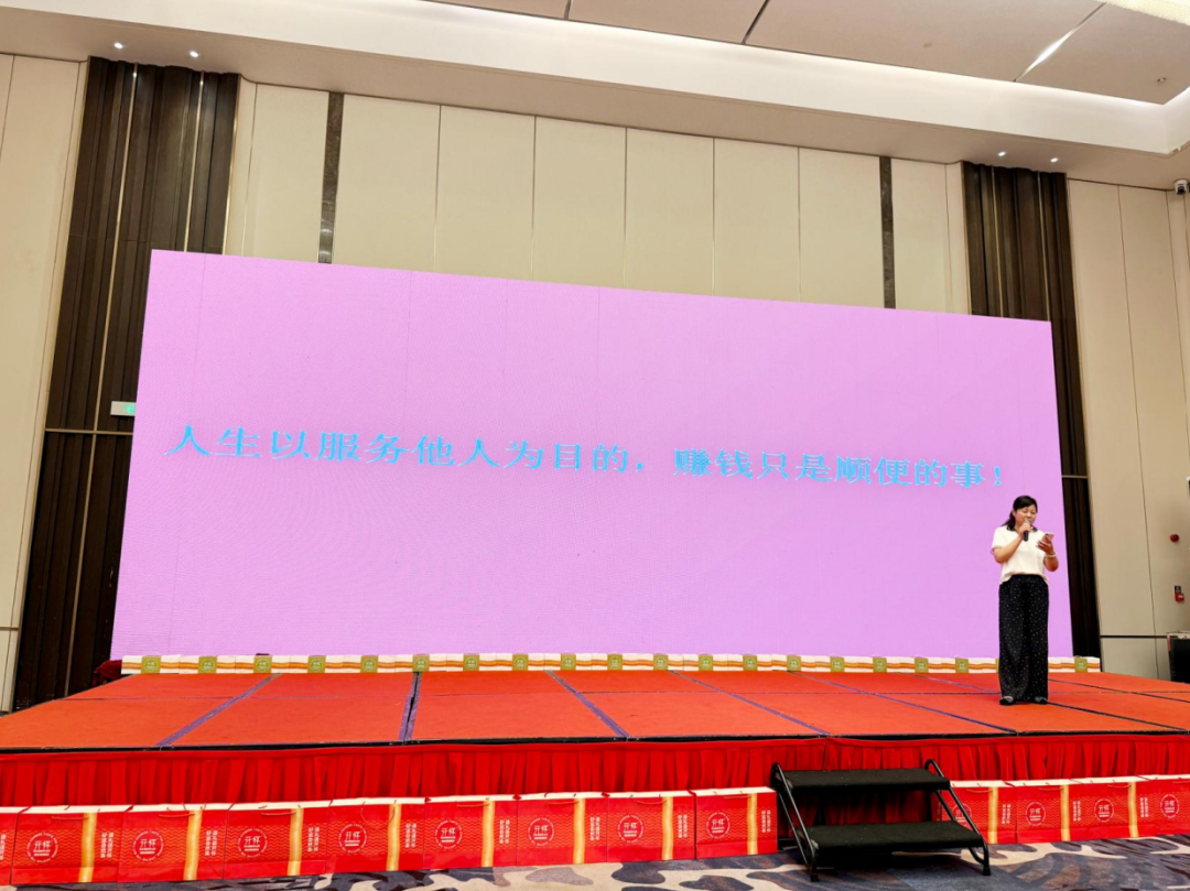 阜阳经销商代表万总登台发言,他深情讲述了自己与开怀的结缘历程,从最初结识开怀,到逐步认可开怀的产品品质与品牌理念,再到最终全身心投入开怀事业,每个阶段都充满对品牌的信任与热爱。他热情的分享让全场感受到开怀的独特魅力,并表示将积极带动阜阳百姓创业就业,坚信开怀·心分享必能在阜阳做大做强!