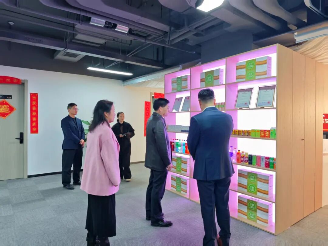 在尹朝林董事长的陪同下,郭战伟副校长一行参观了公司数字化运营中心、产品研发实验室及“心分享”生态系统展示区。校领导详细了解了公司核心业务布局、品牌建设情况,重点关切了以国家地理标志农产品“开怀山药汁”为代表的品牌打造与市场推广路径。