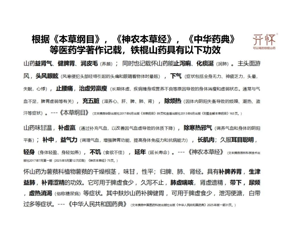 纵观养生食材,能同时满足“典籍认证的多重功效、全民适宜的普适性、无过量风险的安全性”这三大特征的,唯有铁棍山药!开怀铁棍山药汁甄选河南焦作温县原产地十年轮种的铁棍山药作为原材料,这正是开怀铁棍山药汁以其为核心、开创品类并赢得市场认可的根本所在。