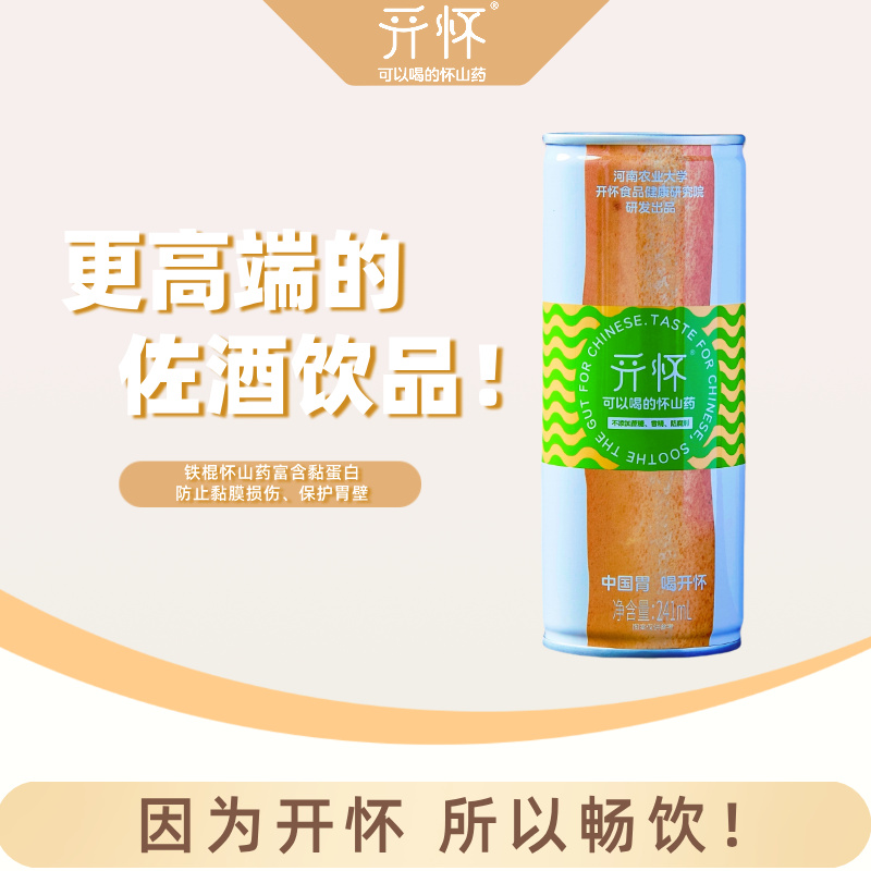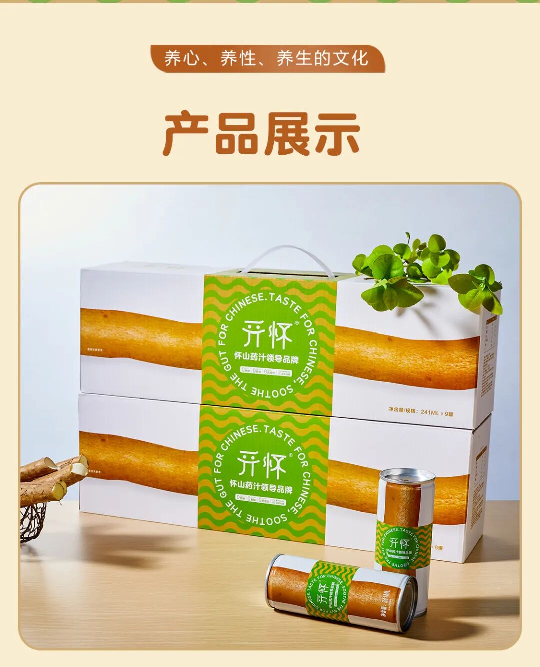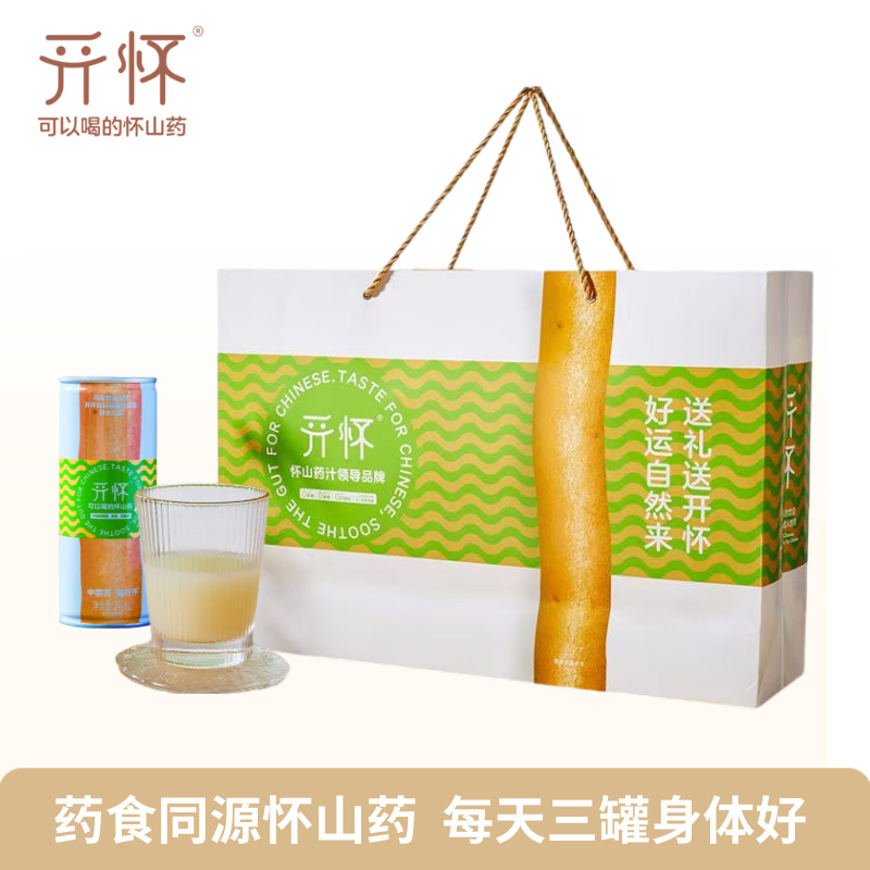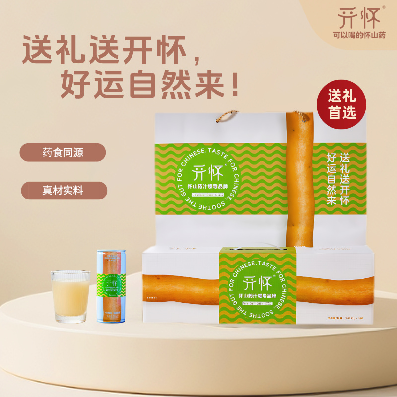 开怀山药汁是目前中国市场上唯一一款用土里植物的根茎直接制作,而不是用提取物或者香精调配而成的饮品。甄选温县道地出产正宗铁棍怀山药,山药原浆含量30%,不添加蔗糖、香精、防腐剂。